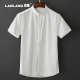 澜狼夏季新款时尚休闲衬衣男短袖 白色提花亚麻宽松潮流百搭衬衫