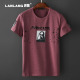 澜狼夏季新款圆领人物贴布几何印花短袖t恤男修身潮流半袖体恤男