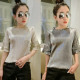 欧洲站2017夏季亮丝圆领短袖上衣气质喇叭袖修身女士时尚T恤潮
