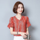 2017夏装新款女印花喇叭袖碎花V领气质女雪纺衫女