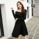 早春新款女装赫本风黑色连衣裙露肩性感礼服裙显瘦中长款打底裙