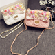 iFashion2017夏季新款潮女珍珠水钻花朵单肩手提斜挎链条小方包包