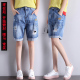 破洞短裤牛仔裤女 夏季直筒卷边图案阔腿大码胖mm到膝盖 五分潮裤