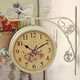 欧式田园复古金属双面挂钟 铁艺双面钟表 客厅静时尚挂钟石英钟表