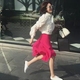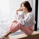 韩国代购春夏不规则半身裙大摆裙樱花粉高腰A字短裙中长裙纱裙女