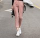 韩国代购修身七分裤休闲裤紧身小脚西装高腰显瘦裤粉色夏季通勤OL