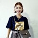 韩国代购宽松圆领显瘦T恤短袖纯棉中长款烫金印花百搭夏休闲短袖