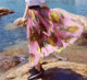 2017新款真丝连体裤裤裙高腰喇叭裙裤数码印花百鸟图红牌同款