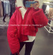 短款棒球服羽绒服白鸭绒外套连帽宽松oversize廓形bf风vt大红色