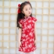 旗铂女童旗袍夏短袖碎花连衣裙中大童纯棉中式汉服儿童旗袍演出服
