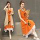 春装新款女装2017民族风棉麻两件套装连衣裙子长款亚麻长裙套裙夏