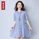 2017夏装新款条纹衬衫女短袖 大码宽松中长款衬衣裙棉开衫妈妈装