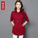 民族风女装夏装上衣中长款短袖衬衫宽松大码纯棉长袖衬衣女妈妈装