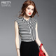 2017夏季新款欧美黑白条纹无袖衬衫女时尚百搭衬衣显瘦雪纺上衣潮
