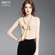 2017春装新款雪纺衫衬衫女长袖v领系带修身百搭衬衣小衫上衣潮