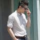 韩国代购2017夏装新款潮牌韩版修身竖条纹男士短袖衬衫七分袖衬衣