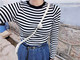 韩国oni 复古百搭学院风条纹圆领显瘦螺纹基本款修身长袖针织衫女