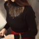 2016秋冬新款韩版休闲心形刺绣长袖蕾丝拼接半高领针织毛衣