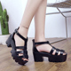 2017新款高跟凉鞋女夏防水台粗跟露趾罗马鞋厚底学院风百搭学生女