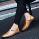 夏季真皮凉鞋男打孔透气男鞋软底男豆豆鞋套脚休闲镂空皮鞋男韩版