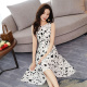 碎花雪纺连衣裙女夏 蓝色倾情2017新款绿色V领收腰中长款文艺裙子