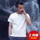 2件装/夏季中国风亚麻短袖t恤修身V领男士休闲复古棉麻体恤男装潮