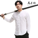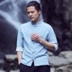 花木酌中国风男士长袖衬衫秋季棉麻复古盘扣立领修身亚麻衬衣潮