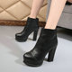 简约粗高跟圆头短靴韩版时尚马丁靴后拉链防水台不累脚秋冬高跟鞋