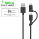 贝尔金苹果6s 5s 三星安卓二合一拖二两用手机数据线高速充电线