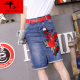 千子2017欧洲站新款短裙牛仔裙夏季时尚刺绣花朵半身裙包臀裙6026