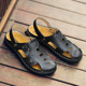 2017夏季新款男士凉鞋时尚休闲两用沙滩鞋真皮透气镂空防滑洞洞鞋