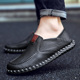 秋季男士真皮商务休闲皮鞋英伦潮流套脚懒人鞋子父亲爸爸手工单鞋