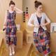 大码女装新款胖妹妹小清新棉麻连衣裙两件套装胖MM中国风印花长裙