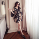 加肥加大码女装秋装2016胖mm蕾丝新款九分袖宽松显瘦胖妹妹连衣裙