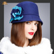 EE 新款英伦花朵秋冬羊毛帽 女时尚小礼帽 圆顶可调节式呢帽5166