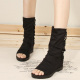 2017春夏季新款透气流苏高筒靴平跟内增高镂空鱼嘴显瘦女靴子包邮