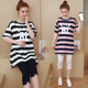 2017孕妇装夏装新款宽松条纹孕妇上衣T恤纯棉短袖孕妇连衣裙潮妈