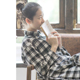 日系全棉双层棉纱纯白文艺格子长袖良品衬衫女装衬衣宽松打底