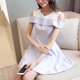 2017夏季新款a字型拼接礼服修身收腰短裙一字肩小清新连衣裙女