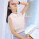 2017夏季韩范小清新无袖宽松衬衣女系带纯色短款衬衫学生甜美上衣