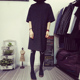 2016冬季女装韩版复古条纹高领五分袖中长款连衣裙内打底衫弹力