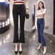 2017春秋新款韩版女装钻石纹大码弹力牛仔喇叭裤炒雪花牛仔裤