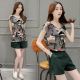 171-1款 韩版夏季新款圆领短袖印花修身T恤纯色宽松短裤两件套p50