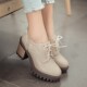 春秋新款英伦系带复古短靴女学生休闲高跟粗跟单鞋女士防水台单靴