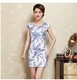 2017新款旗袍青花瓷烫银时尚改良唐装日常短款旗袍女夏礼服连衣裙