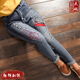 胖mm蓝色牛仔大码女装显瘦时尚百搭印花高腰小脚裤长裤韩版女装