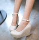 2016春秋季新款坡跟高跟女单鞋百搭一字扣厚底防水台梭跟女鞋子白