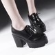 2017欧美春夏新款鱼嘴皮鞋粗跟高跟女拖鞋防水台黑色百搭女凉拖鞋