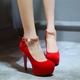 韩版显瘦超高跟圆头单鞋性感细跟绒面女鞋夜店防水台时尚红色婚鞋