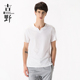 吉野夏季男士t恤短袖v领休闲修身男装日系复古纯棉针织套头体恤衫